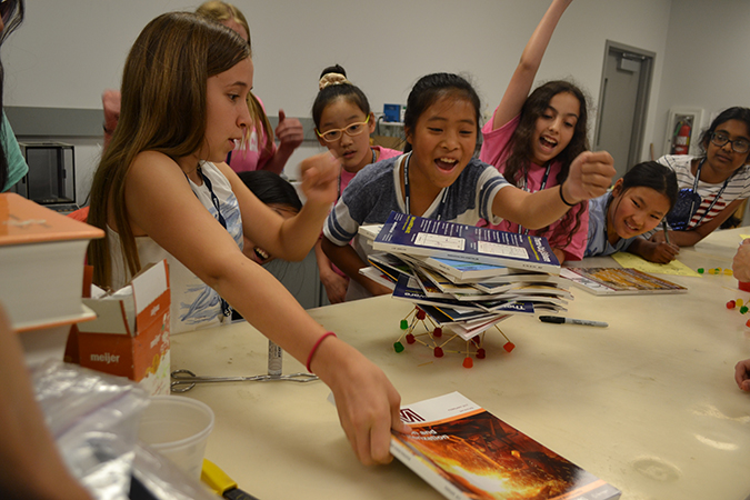 How do you get these young girls interested in the applications using materials science? One way to do that is to broaden one piece of a concept and apply it to something fun and engaging for the students. Jill Carbone, a rising junior in MatSE who also helped out with the GLAM camp, acknowledges this idea by saying: