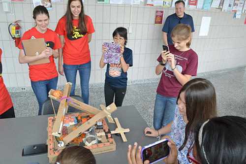 The afternoon consisted of a student panel where Illinois students answered questions from the girls or their parents about anything, followed by the main event of the day, a Batman-and-Robin-themed Rube Goldberg Challenge, which was designed to mostly emphasize mechanical engineering.