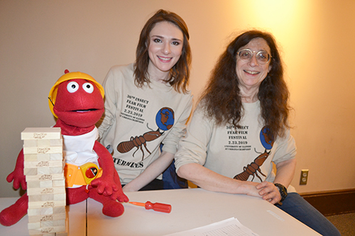 Of course, another popular area was the kids’ activities upstairs For instance, chatting with a termite puppet was ventriloquist Hannah Laskowski, May Berenbaum’s daughter, who shares that she came all the way from LA for the Insect Fear Film Festival because Mom asked her to.